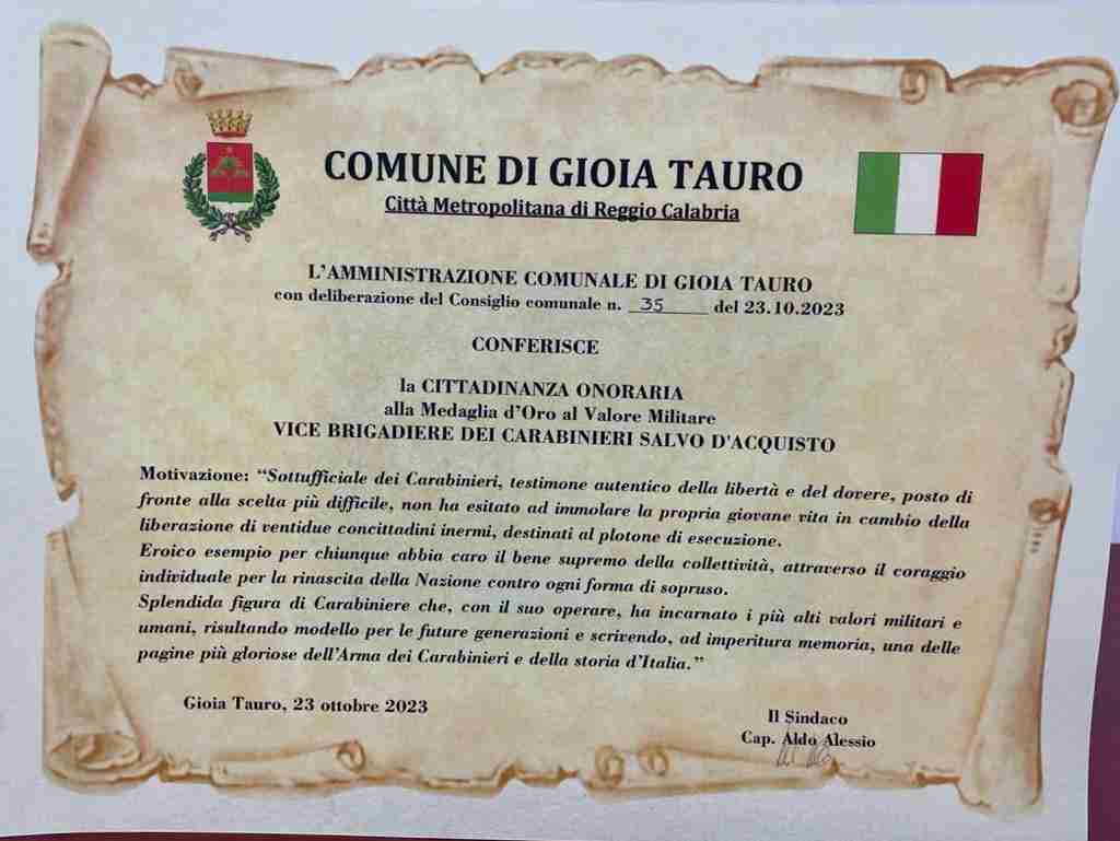 A questa sono seguite una serie di eventi che, oltre a ricordare e celebrare il decorato, sono servite a illustrare la sua figura ai ragazzi delle scuole della Piana, come avvenuto a Taurianova qualche giorno fa e stamattina a Gioia Tauro dove gli alunni dei due Istituti Comprensivi di quel centro cittadino sono stati ospitati all’interno della sala del Consiglio Comunale dove, al termine, di una sentita e sobria cerimonia, il Consiglio Comunale ha deliberato il conferimento della cittadinanza onoraria in favore del militare caduto.