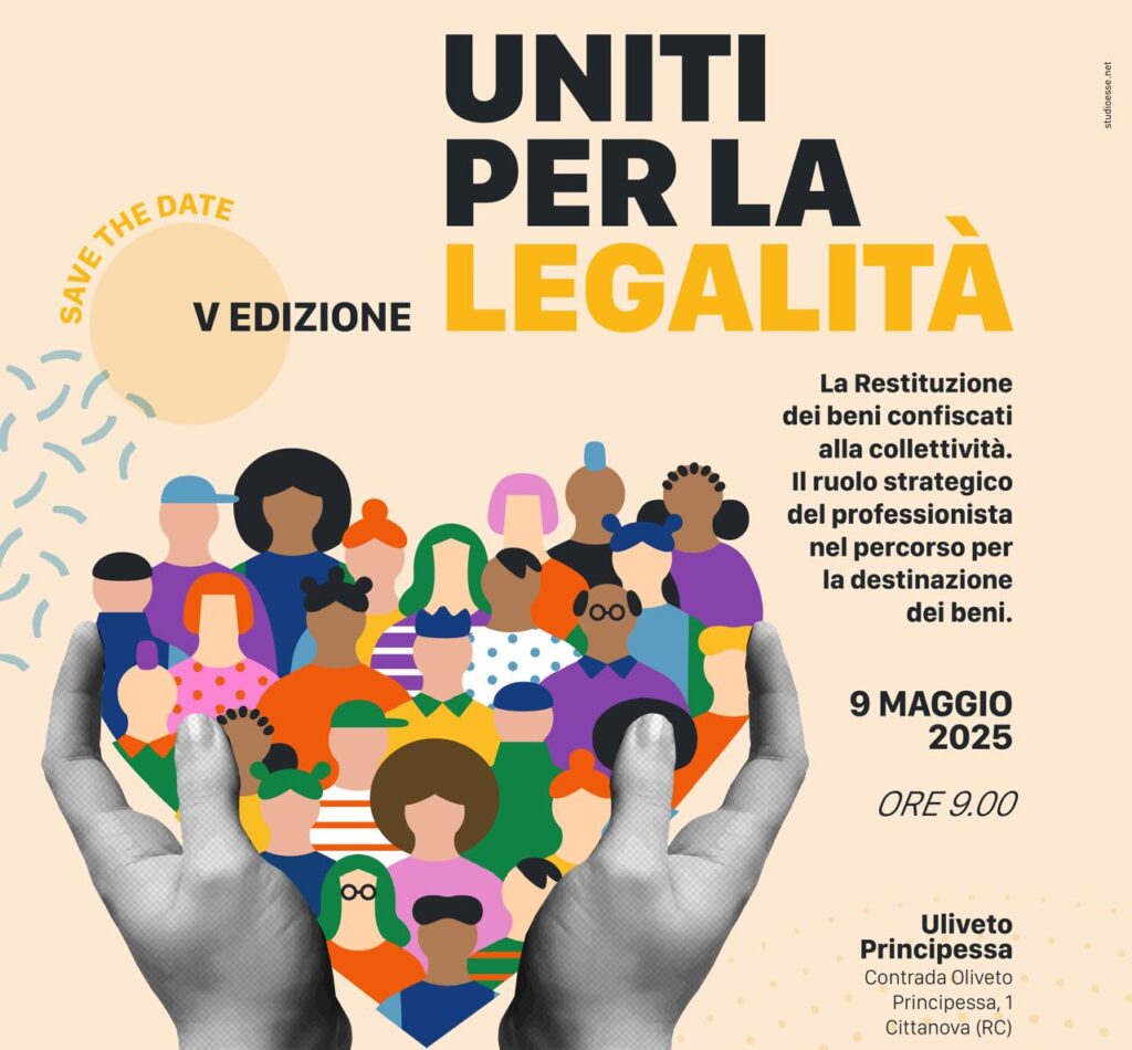 Il prossimo 9 maggio, dalle ore 9:00 alle ore 13:00, a Cittanova (RC), presso la struttura “Uliveto Principessa”, si terrà la V Edizione del Convegno “Uniti per la legalità”, promosso dall’UNGDCEC in collaborazione con la Commissione Nazionale di Diritto Penale dell’Economia e Consulenze Tecniche.
