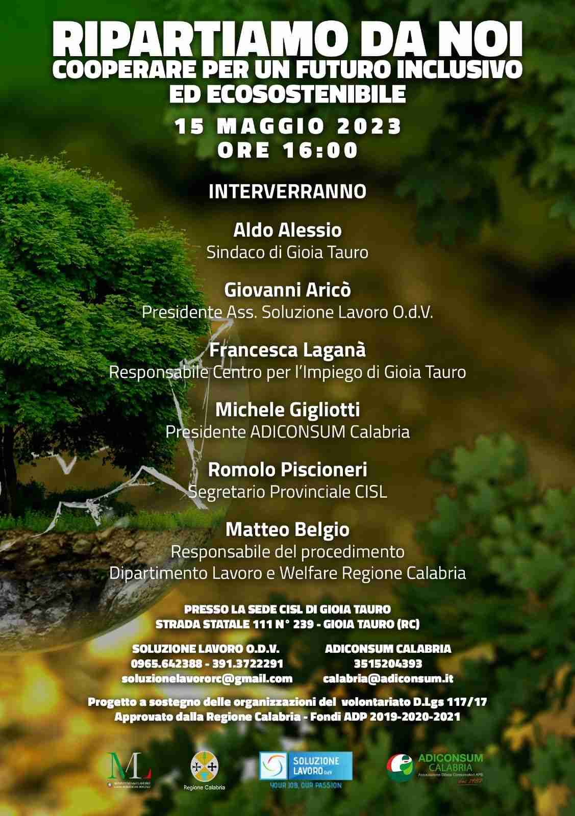 Ringraziamo sia il precedente ed attuale Assessore alle Politiche Sociali della Regione Calabria nonché il Dipartimento Lavoro e Welfare, in particolare il Settore Welfare – Terzo Settore – Volontariato, per aver creduto fortemente nella bontà del nostro progetto che ci auguriamo sia foriero di segni concreti che affianchino tutte le misure idonee a contrastare la piaga della disoccupazione in Calabria».