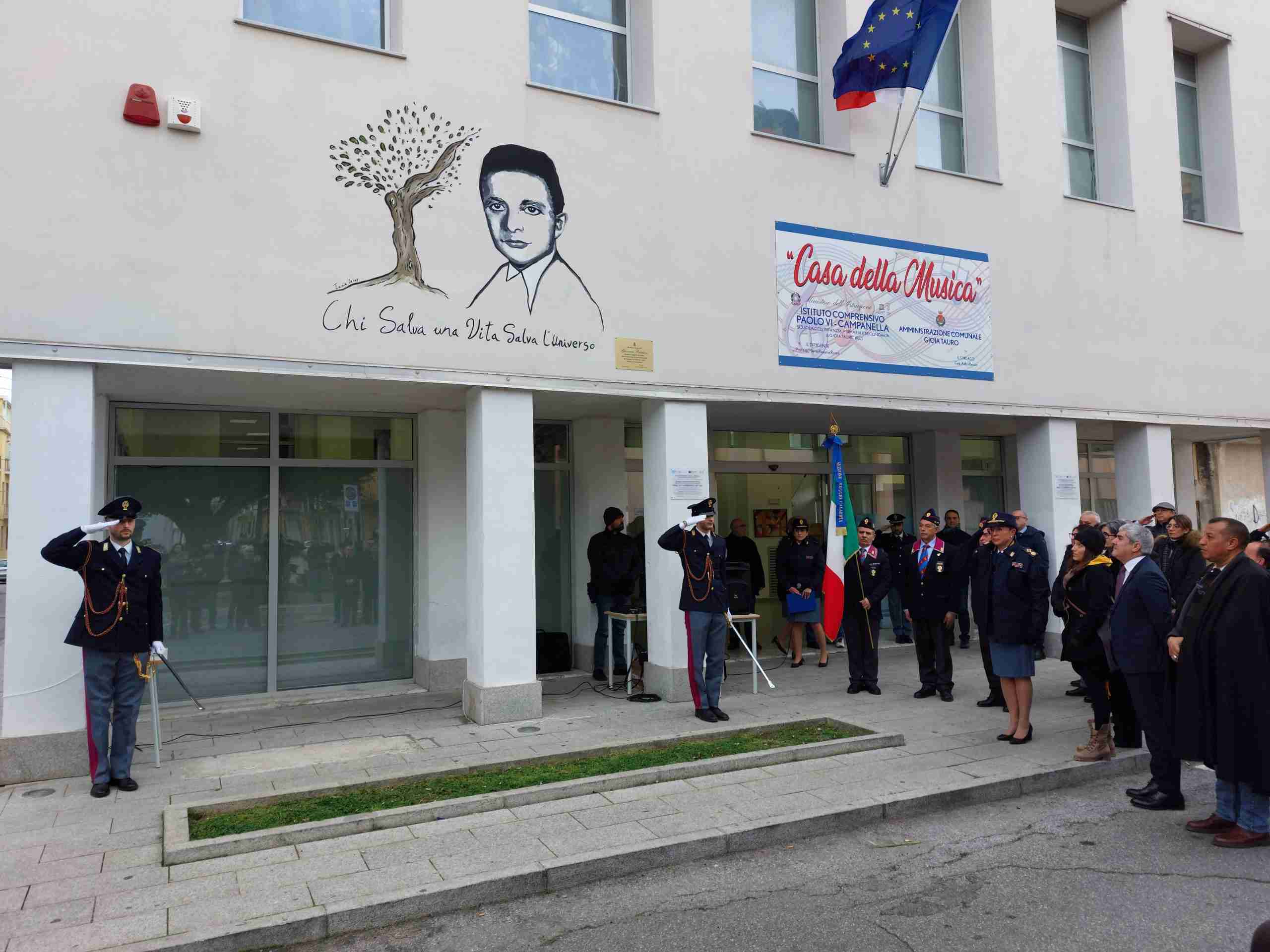 Al fine di onorare il suo sacrificio e tenerne vivo il ricordo, la Questura di Reggio Calabria ha incaricato l’artista reggina Tania Azzar per la realizzazione di un murales commemorativo che, d’intesa con l’Amministrazione Comunale di Gioia Tauro, è stato impresso sulla facciata della “Casa della Musica” di quel centro.
