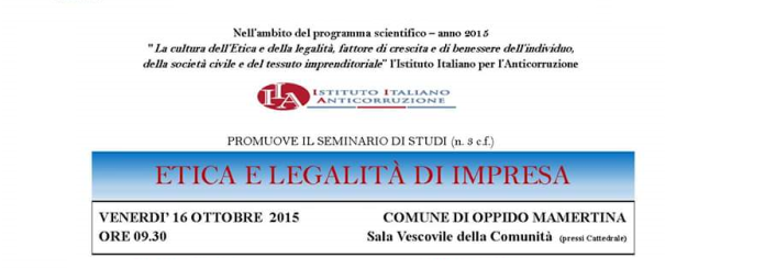 Si svolgeranno il prossimo 16 ottobre 2015 alle ore 9.30 presso la Sala Vescovile della Comunità di Oppido Mamertina (Cattedrale di Oppido Mamertina) i lavori del Seminario formativo “Etica e Legalità di Impresa”.