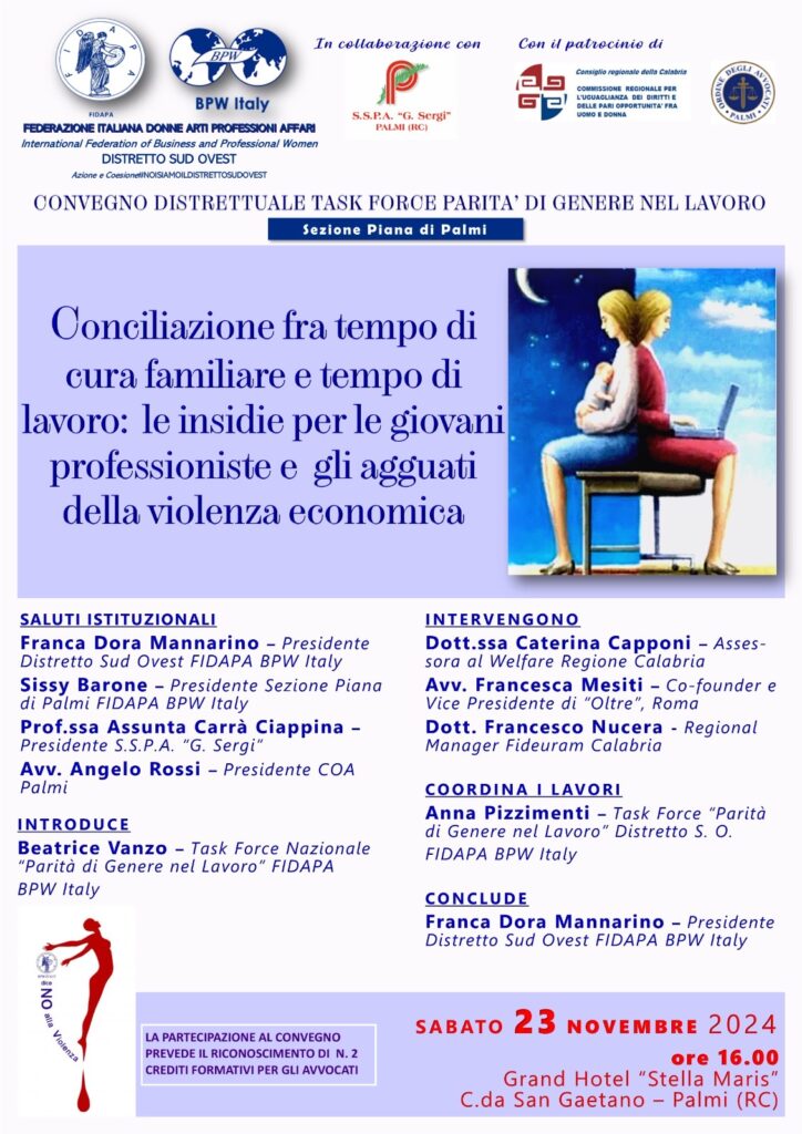 L’evento è promosso da Anna Pizzimenti, socia e Task Force per il distretto Sud Ovest della FIDAPA BPW Italy sulla “parità di genere nel lavoro”.