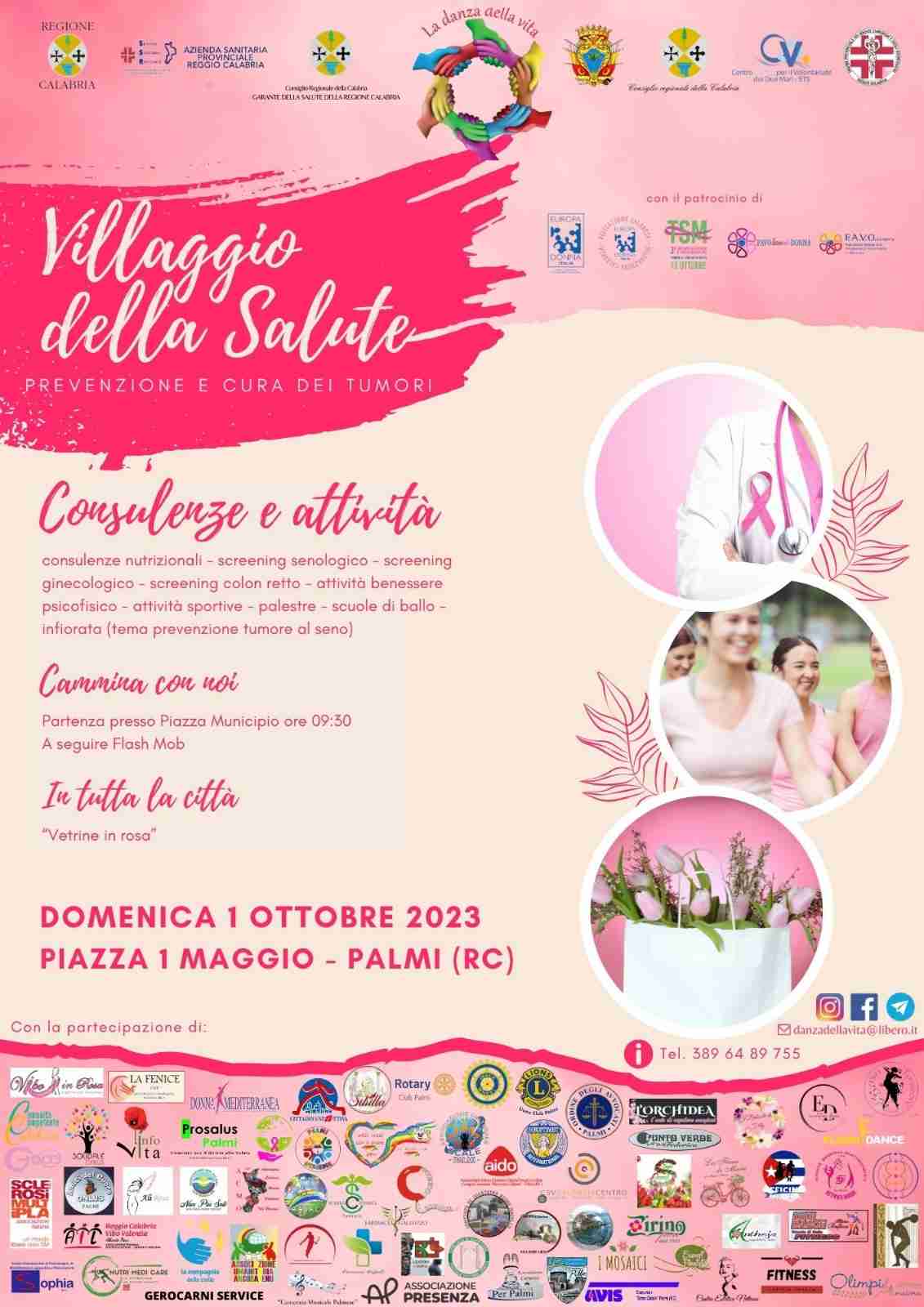 Domenica 1 ottobre 2023, in piazza Primo Maggio a Palmi, la Onlus “La Danza della Vita”, che tutela le persone affette di cancro, organizzerà il primo “Villaggio della Salute”, a cui parteciperanno ben 63 associazioni provenienti da tutta la Calabria.
