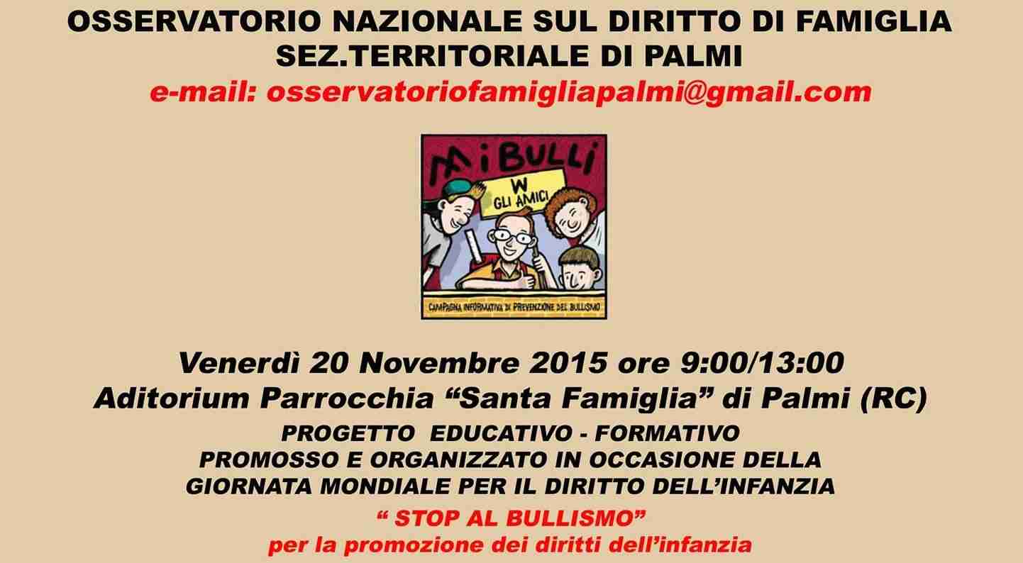 Per prevenire e contrastare gli atti di prepotenza, lo scorso 14 novembre si è svolta la prima giornata di informazione e prevenzione, organizzata dalla sezione territoriale di Palmi dell’Osservatorio Nazionale sul Diritto di Famiglia, presieduta da Giovanna Cartisano.