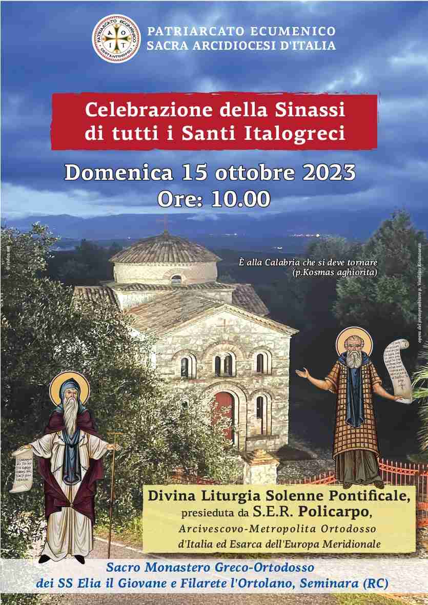 L’evento nasce in occasione della prima celebrazione comune di tutti i Santi Italogreci, istituita da Sua Eminenza Reverendissima il Metropolita Ortodosso d’Italia Policarpo, e che onora tutti i Santi dell’Oriente Cristiano, nati e vissuti nel Meridione d’Italia e detti per questo motivo “Italogreci”. Molti di essi erano proprio calabresi: sant’Elia di Enna, san Filarete, san Fantino, san Nicodemo di Mammola, san Nilo di Rossano e numerosi altri.