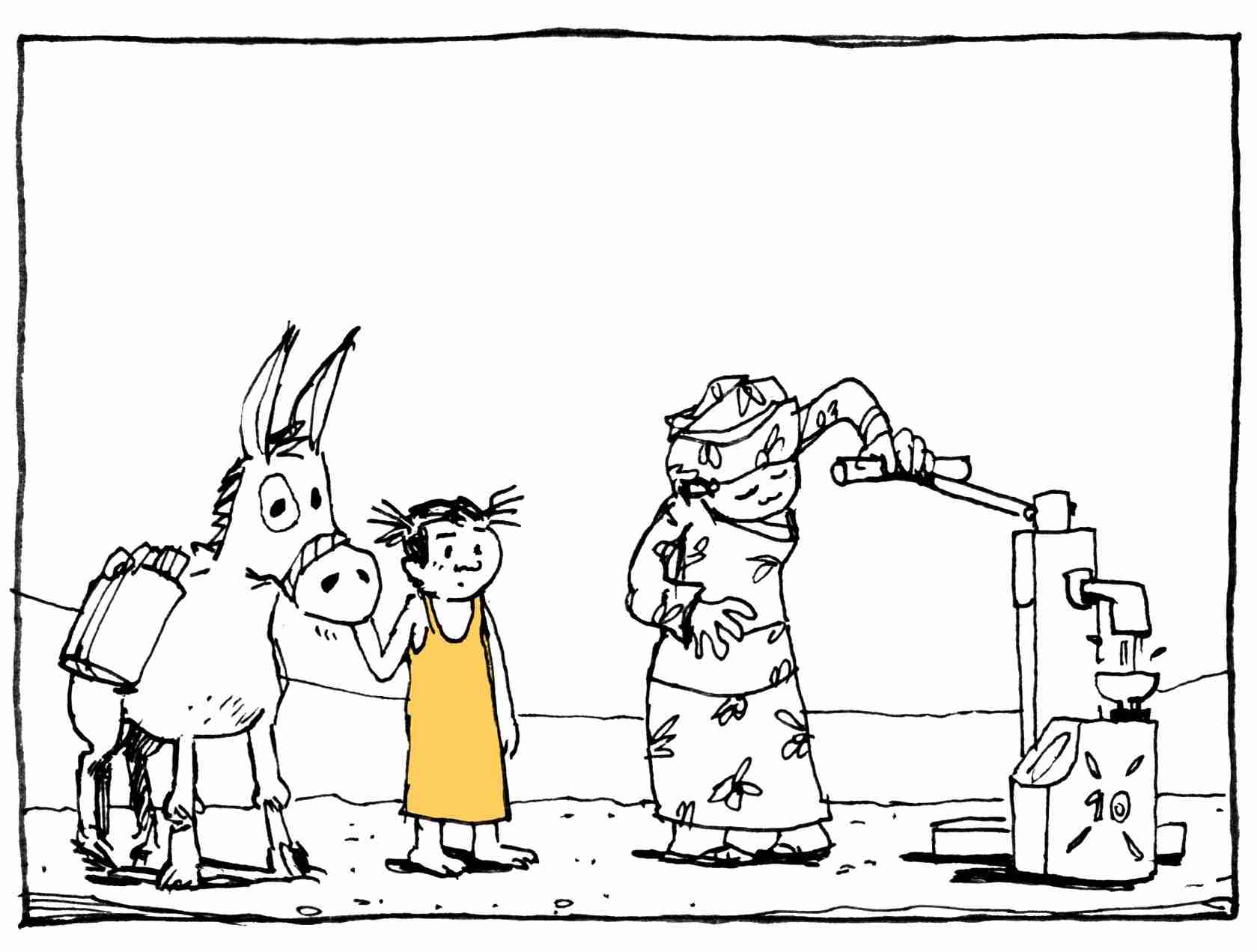 ActionAid in collaborazione con Gud ha realizzato un fumetto per sensibilizzare tutti sull’importanza di sostenere il costante lavoro per garantire l’accesso all’acqua potabile a tutti. Nel fumetto è narrata la storia di una bambina che ogni giorno affronta molti chilometri a piedi con la mamma per raggiungere la pompa d’acqua dove raccogliere il necessario per la famiglia. Nelle vignette sono raccontate in maniera semplice e diretta tutti i diritti che sono negati alla bambina, ponendo l’attenzione non solo sulla mancanza di acqua, ma anche sull’assenza di cibo, la mancanza di scuole e lo sfruttamento minorile.