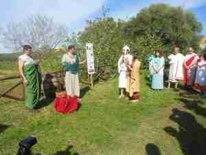 Attori vestiti da antichi romani, musici, danzatori, suonatori di flauto, hanno contribuito a realizzare il breve “sketch”: il corteo ha percorso il corridoio principale del parco, fermandosi per tre volte in tre posti nei quali erano allestiti dei banchetti, dove al termine della rappresentazione gli ospiti hanno potuto degustare vini e cibi che ricordavano quelli degli antichi romani.