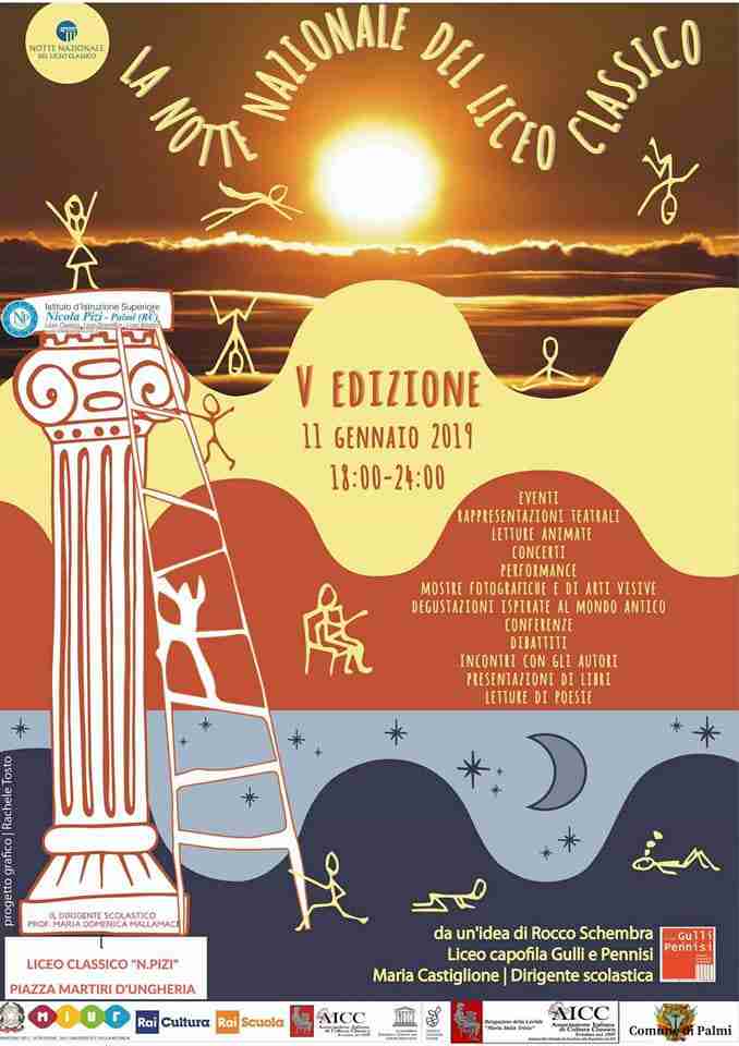 Il prossimo 11 Gennaio, nei locali del Liceo Classico “Nicola Pizi” di Palmi, in Piazza Martiri d’Ungheria, si svolgerà la Notte Nazionale del Liceo Classico, evento che in contemporanea si svolgerà in tutti i Licei Classici d’Italia che ne abbiano dato l’adesione.