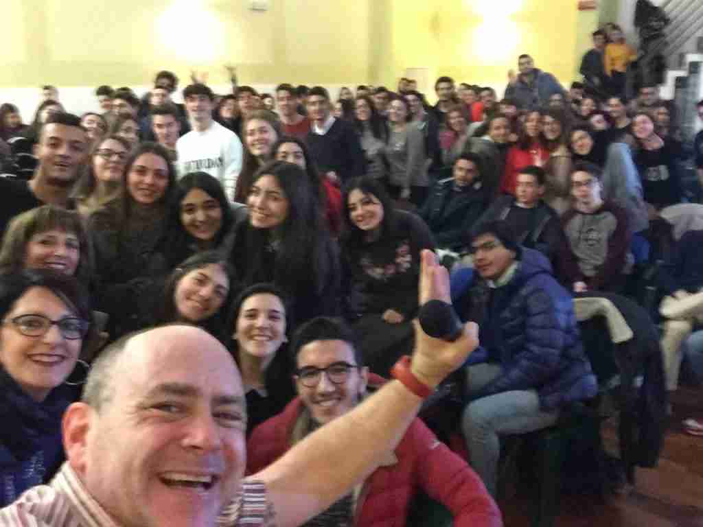 L’Auditorium è stato gremito di studenti che, in due turni successivi, si sono uniti a cantare insieme a lui la grammatica della Lingua Inglese e le sue eccezioni. Un’attività vincente che Levine diffonde in molte scuole del mondo e che coglie un obiettivo fondamentale: se ripetere le regole a casa può diventare noioso, questo lavoro di ripasso, con l’aiuto della rapmusic, favorisce la memorizzazione della grammatica, divertendosi.