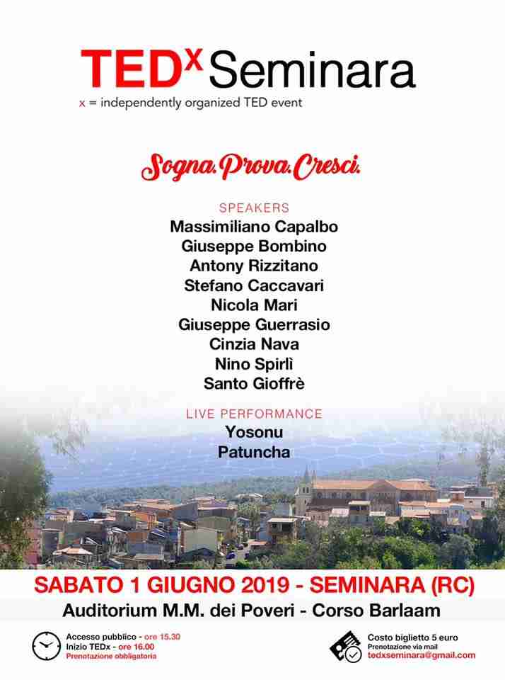Scrivanie eliminate, discorsi infiniti vietati, solo esperienze ed emozioni. Questo è stato il Ted x Seminara, l’iniziativa che sabato 1 giugno ha portato nel piccolo centro della Piana un gruppo di pesone che ha scelto di impegnarsi e darsi da fare per cambiare il sud.