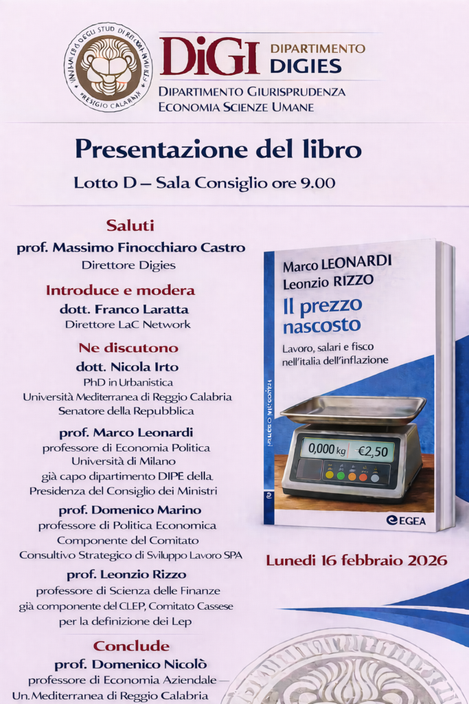 Economia e Scienze Umane (DiGiES) – promuove la presentazione del volume Il
