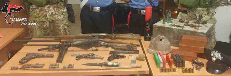 Nell’ambito di tale operazione sono stati sottoposti a perquisizione vari terreni ed abitazioni nell’area aspromontana, tra cui quella degli arrestati, proprietari di vari immobili. In uno di questi, in frazione Lubrichi di Santa Cristina d’Aspromonte, nascosto nel solaio, i militari hanno rinvenuto l’arsenale composto anche da armi solitamente in dotazione agli eserciti della prima e seconda guerra mondiale, in ottimo stato di conservazione e pronti all’uso, tanto che alcune erano con caricatore pieno.