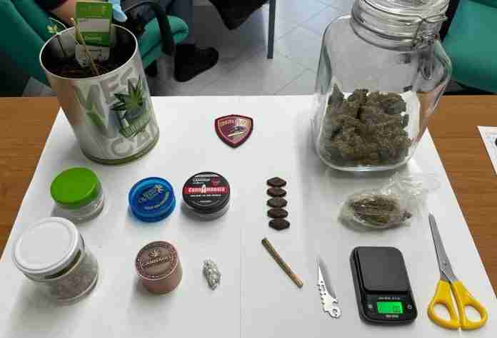 L’attività degli operatori della Volante, con l’ausilio di un altro equipaggio, è poi continuata presso l’abitazione dell’uomo e, nella stanza da letto, è stata rinvenuta della sostanza stupefacente, circa 70 grammi tra marijuana e hashish, già essiccata e divisa in diversi contenitori, in piccole dosi, verosimilmente destinate alla vendita al dettaglio.