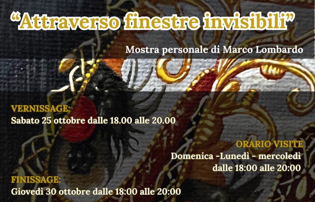 L’associazione di promozione sociale “Arte che Parla”, con il patrocinio del Comune di Polistena (R.C.), organizza, nell’ambito del progetto “Espressioni d’arte”, ideato dalla presidente e organizzatrice di eventi Simona Mileto, dalla socia e artista cosentina Marilena Cucunato, curatrice, e dalla socia Amalia Papasidero, responsabile della comunicazione, la mostra “Attraverso finestre invisibili”, dell’artista Marco Lombardo.