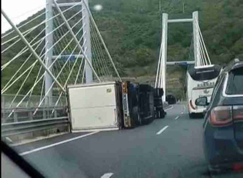 Un camion che stava percorrendo l’autostrada A2 si è ribaltato all’altezza del ponte di Favazzina a causa del forte vento.