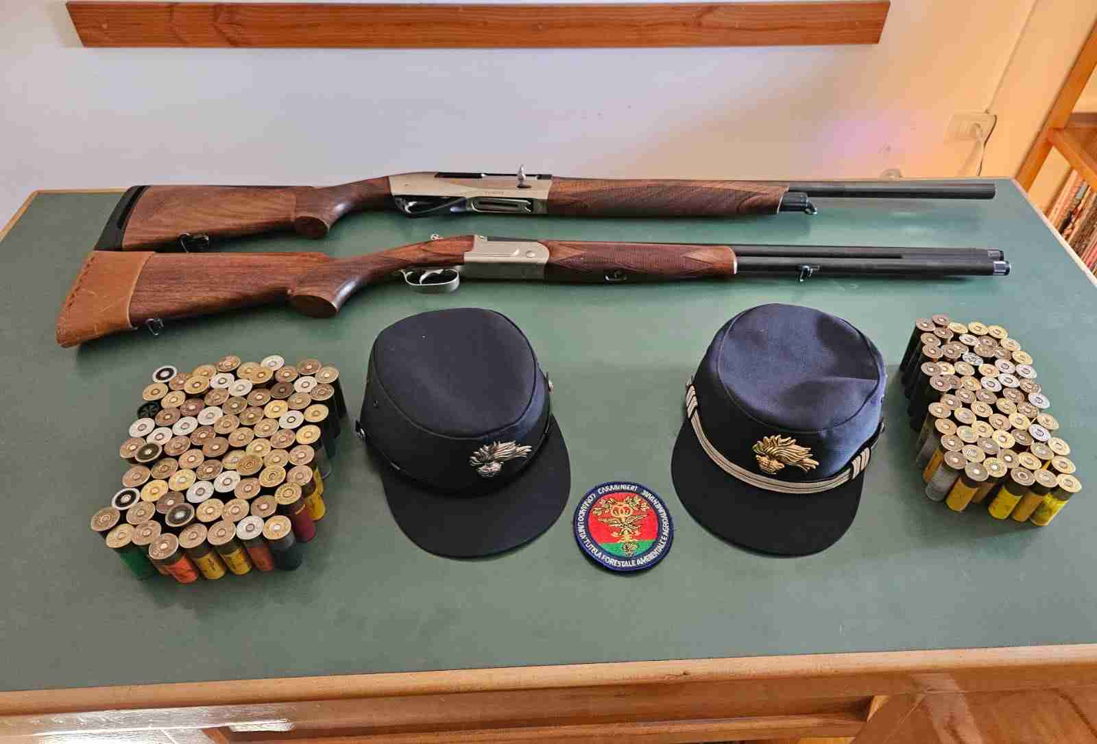 Le evidenze sopra esposte conducevano al deferimento dei due soggetti all’A.G. competente, nonché al sequestro di n. 2 due fucili, calibro 12 e calibro 20 ed un numero considerevole di cartucce.