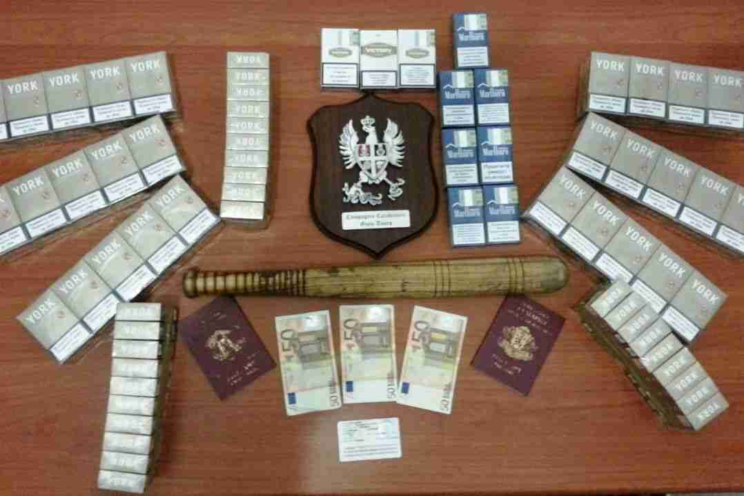 In un garage utilizzato da Topalov, i carabinieri hanno trovato 99 pacchi di sigarette contraffatte e sul suo furgone, un bastone di legno.