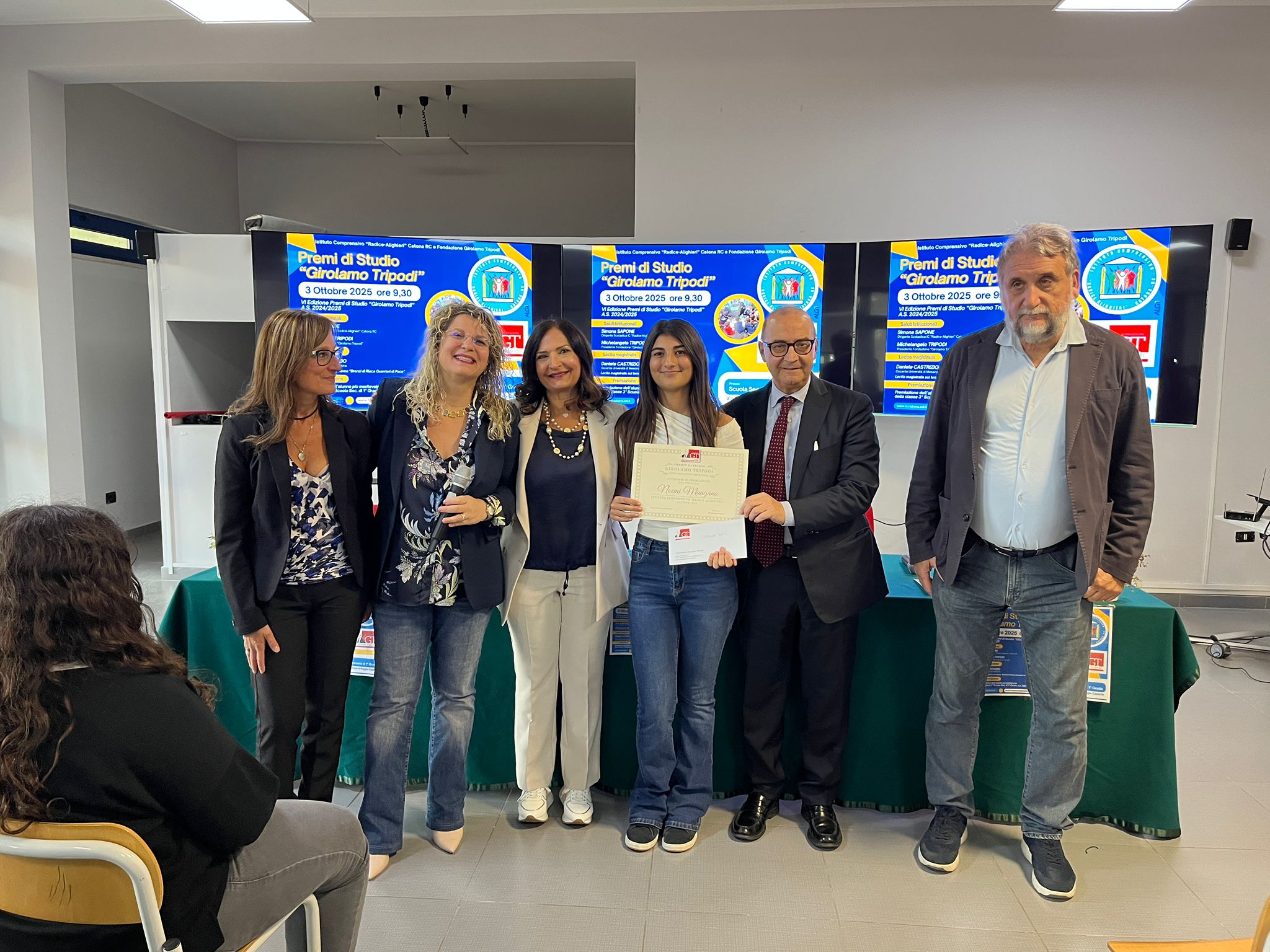 Questa nuova stagione si è avviata all’Istituto Comprensivo “Radice Alighieri”, laddove presso la Scuola Secondaria di 1° Grado di Catona, si è tenuta la cerimonia di premiazione, alla presenza dei figli del compianto sen. Girolamo Tripodi, Michelangelo e Maria Concetta e di una folta rappresentanza di alunni delle classi della Scuola Media nonché dei docenti delle classi interessate.
