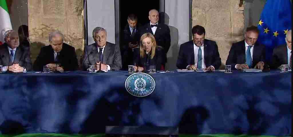 Sottolineando con il tono di voce le ultime parole nel ribadire che nessuna responsabilità può essere addossata al governo e quasi a voler anticipare le domande sulla tragedia di Cutro. Parole che però non vengono raccolte dalla stampa.