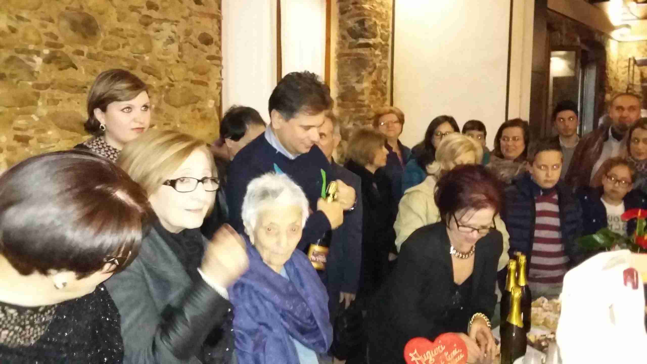 Pedà, accompagnato dalla sua vice Annamaria Stanganelli e da due consiglieri Cristian Guerrisi e Nicola Zagarella, ha voluto ringraziare Matilde Pipino e Antonio Pisano dei Servizi sociali presenti alla festa, e ha consegnato a nonna Vincenza una targa di auguri a nome della sua amministrazione.