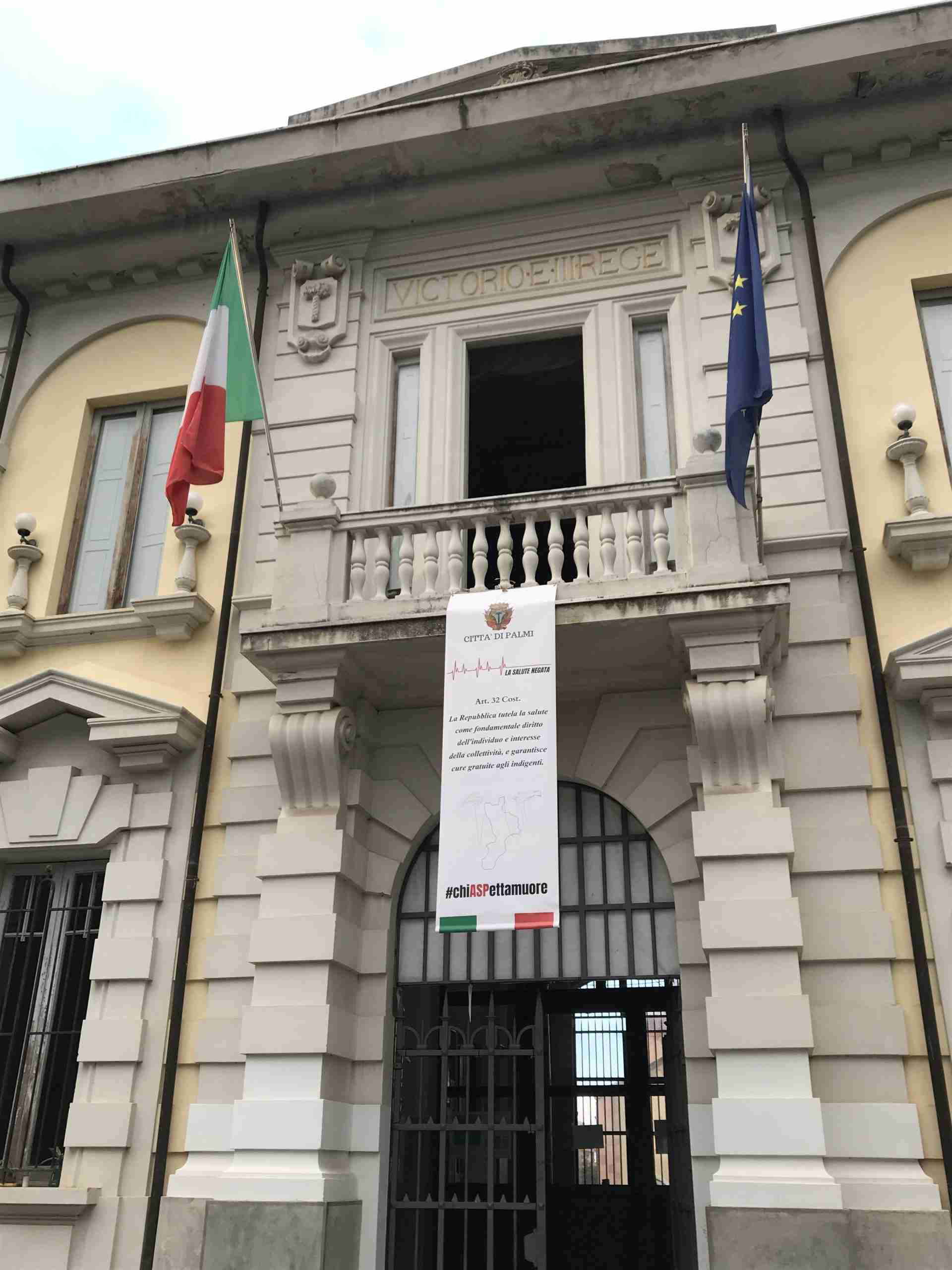 L’articolo 32 della Costituzione Italiana ricorda che la salute è un diritto di tutti, nessuno escluso, e da questo pomeriggio il testo si trova esposto in un banner sul balcone di Palazzo San Nicola a Palmi – con tanto di hashtag #chiASPettamuore – per volere del sindaco e dell’amministrazione comunale, che dopo le vicende degli ultimi giorni legate allo scandalo nel settore della sanità regionale, vogliono ribadire che la Calabria non è figlia di un Dio minore, e che i calabresi hanno diritto ad una buona sanità.