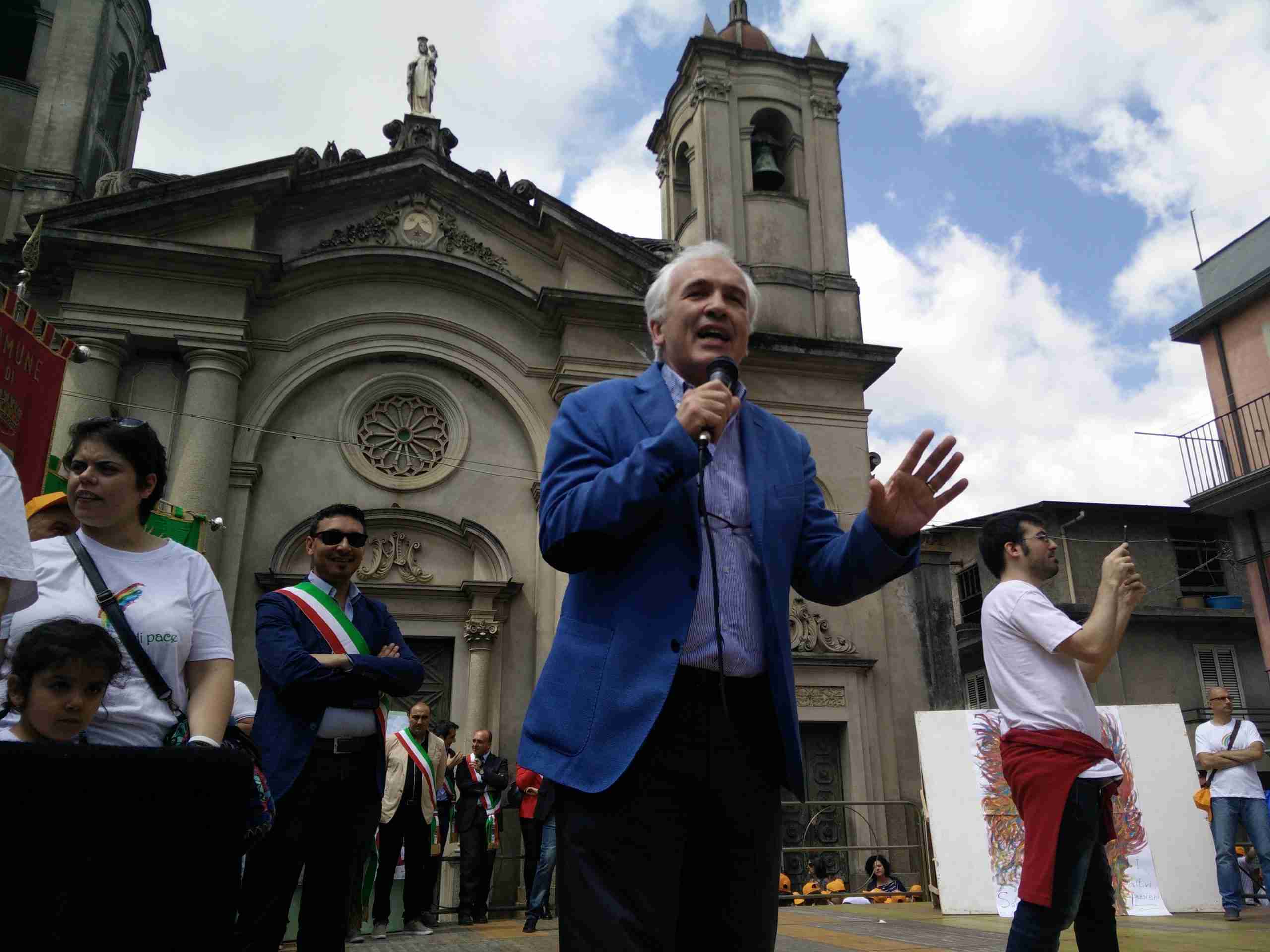 Insieme ai ragazzi, alle associazioni e ai sindaci che hanno indossato la fascia tricolore era presente alla marcia Flavio Lotti, il direttore del coordinamento nazionale enti locali per la pace e i diritti umani, un’associazione fondata nel 1986 che riunisce oltre 700 tra comuni, province e regioni italiane.