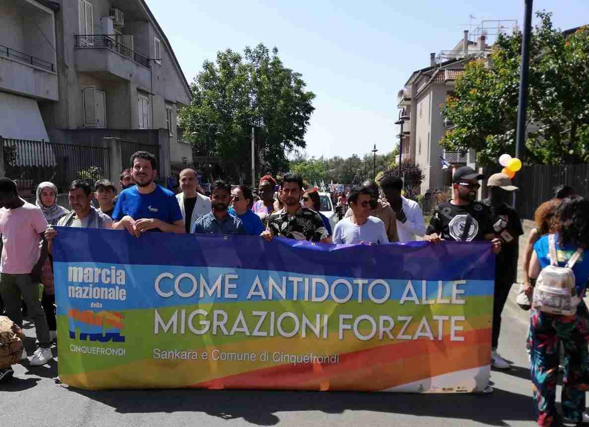 Un arcobaleno di colori ha illuminato ieri Cinquefrondi che ha ospitato la Marcia nazionale della pace organizzata da Recosol in sinergia con l’Amministrazione comunale e diverse associazioni che hanno contribuito ad accogliere festosamente un migliaio di partecipanti che, sfidando la canicola pomeridiana, hanno dilagato per le strade cittadine formando un allegro corteo che si è dipanato lungo le principali vie cittadine in un percorso snodatosi per oltre due ore. Canti, slogan, cori e tante voci di semplici cittadini, diverse associazioni, rappresentanze sindacali ed immigrati a sfilare fianco a fianco ai rappresentanti istituzionali, decine di sindaci, gonfaloni dei comuni e della Città Metropolitana che non sono voluti mancare all’appuntamento allestito appositamente nella Giornata mondiale delle migrazioni per chiedere un mondo più giusto ed accogliente, specie per le persone che provengono dal sud del mondo. Un momento di festa certo, ma anche un momento di riflessione grazie agli interventi delle diverse personalità che si sono alternate sul palco allestito in piazza della Repubblica – con la stura data dai migranti della cooperativa Sankara pronti a ribadire le ragioni delle emigrazioni – per riflettere ancora una volta sull’inutilità di guerre e conflitti e la necessità della pace come antidoto alle migrazioni forzate che mettono a repentaglio tante vite umane. Il bisogno, insomma, di recuperare quel senso smarrito di umanità che contrappone le paure degli uomini in conflitti armati che causano solo morte e distruzione impedendo a ciascuno di vivere serenamente nella propria terra di origine e costringendo a riporre tutte le speranze in una barca sfidando la sorte ed il mare per abbracciare un futuro fatto di incognite ed incertezze in quel lembo di terra promessa chiamata Europa.