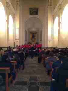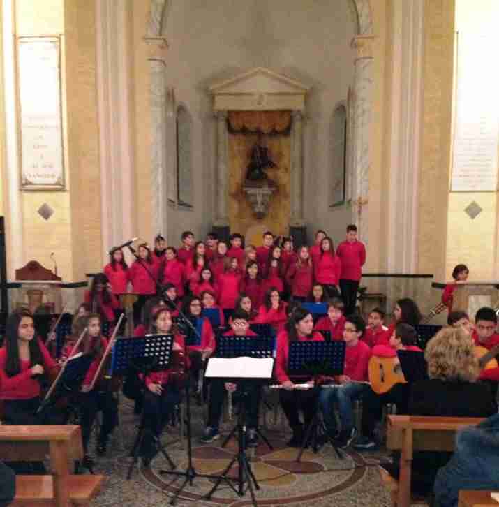 Dietro ai flauti, alle chitarre, ai violini  e alle pianole, diretti dall’insegnante Caterina Genovese, un coro di ragazzi cantava alcuni dei canti proposti.