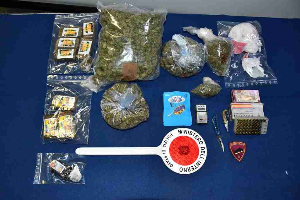 Il totale delle sostanze stupefacenti sequestrate è di 1750,94 grammi Durante l’attività in argomento, altresì, è stata rinvenuta e sequestrata la somma di 3900 euro in contanti, custodita in due contenitori differenti.