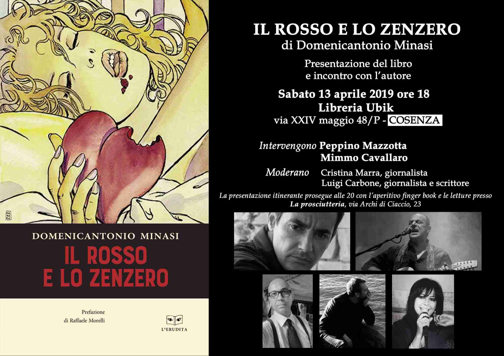 Il libro racconta di amori che mordono feroci il cuore. Amori rosso sangue pungenti come lo zenzero. Amori inafferrati e lasciati andare. Per condividere un sogno la richiesta del cuore è la perfezione. Questi amori nudi e imperfetti sono trentuno poesie più Le attese, edite da L’Erudita. Sensazioni senza resistenza e intralci espresse da Domenicantonio Minasi con un linguaggio potente e incorrotto, che arriva veloce all’anima.