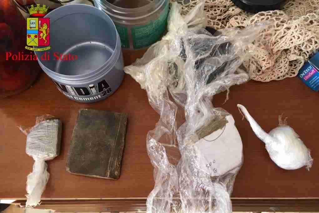 La droga era nascosta in tre diversi barattoli in uno dei bagni della casa.