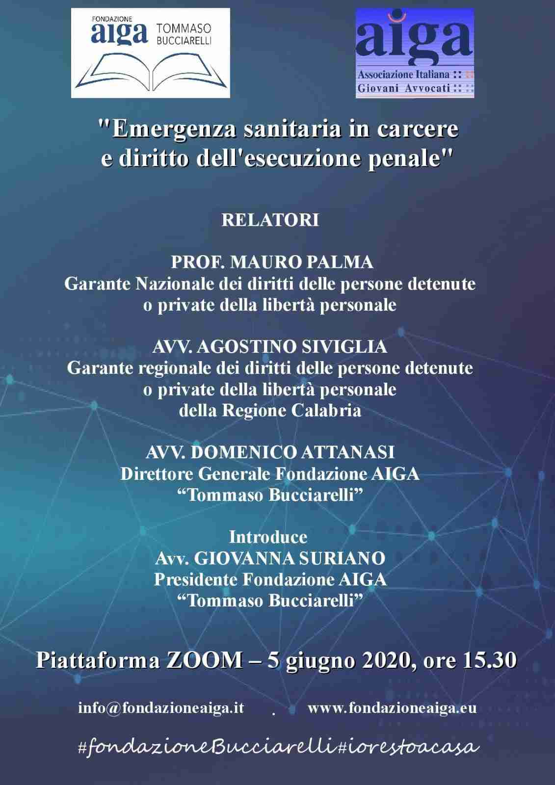 In occasione delle periodiche attività di formazione a distanza, la Fondazione Aiga “T. Bucciarelli”, con la consueta attenzione alla valorizzazione e diffusione della formazione e della cultura giuridica e professionale, con la collaborazione di Aiga, ha organizzato un webinar sul tema “Emergenza sanitaria in carcere e diritto dell’esecuzione penale”.