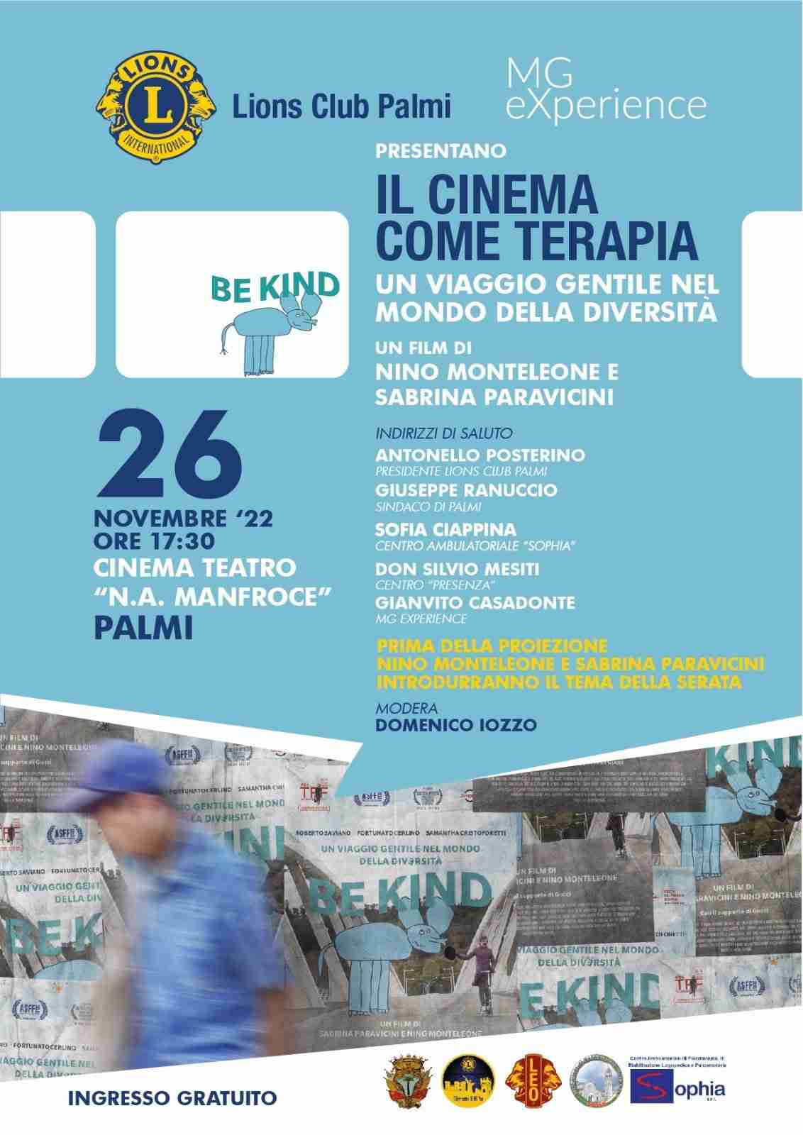 Il Lions Club di Palmi, in collaborazione con la MG Experience ed il Comune di Palmi e con il supporto del Leo Club, dell’Associazione Presenza e del Centro Sophia, organizza per sabato 26 novembre alle 17.30, presso il CineTeatro Manfroce, la proiezione del film Be Kind.
