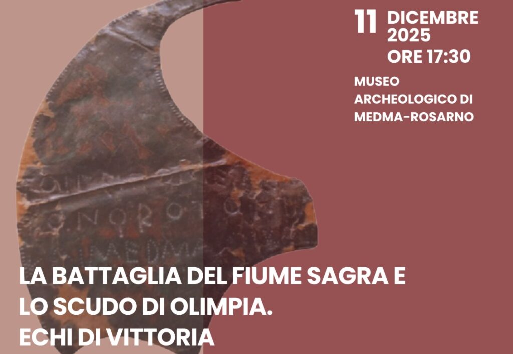 Il Museo e Parco Archeologico Nazionale di Medma-Rosarno ospiterà giovedì 11 dicembre alle ore 17.30 un importante appuntamento culturale dal titolo “La battaglia del Fiume Sagra e lo scudo di Olimpia. Echi di Vittoria”.