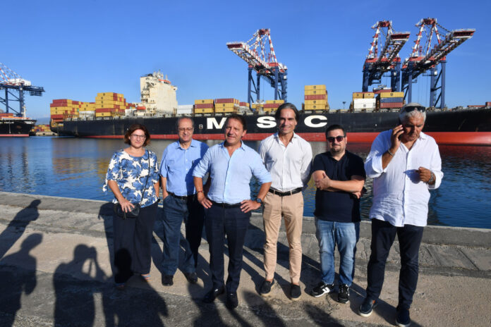 Giuseppe Falcomatà e Pasquale Tridico hanno effettuato un sopralluogo al Porto di Gioia Tauro, dove l’impegno dei lavoratori così come gli sforzi dell’armatore Gianluigi Aponte, patron della Msc e gestore del principale hub di trasbordo dell’infrastruttura gioiese, «rischiano di essere vanificati da un Governo e da un centrodestra che guardano a Nord lo sviluppo della navigazione commerciale». All’incontro, fuori dai cancelli della grande infrastruttura trasportistica, hanno preso parte rappresentanti dei lavoratori e delle forze sindacali presenti nel contesto socioeconomico del Porto e della piana di Gioia Tauro.