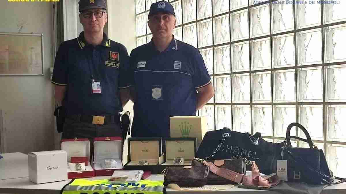 I funzionari dell’Ufficio delle Dogane di Catanzaro in servizio alla Sezione operativa territoriale “Aeroporto Internazionale” di Lamezia Terme e i militari della Guardia di finanza della Squadra operativa stanziale Gruppo Lamezia Terme, hanno sequestrato 4 orologi e 5 borse contraffatti trasportati nel bagaglio di un viaggiatore proveniente da New York e in transito da Roma.