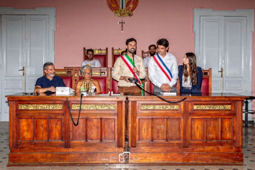 Ad accogliere il primo cittadino della città della Costa Azzurra anche gli altri rappresentanti dell’Amministrazione Comunale di Palmi, i delegati della Fondazione Varia, il presidente dell’associazione ‘Mbuttaturi e alcuni rappresentanti delle corporazioni degli Artigiani, dei Bovari, dei Carrettieri e dei Contadini. Presenti anche Sara Surace e Antonio Gangemi, neo eletti Animella e Padreterno per l’edizione 2024 della Varia, visibilmente emozionati e felici per il legame che si sta consolidando tra le due città, «perché ogni gemellaggio è profumo di pace», come ha dichiarato Gangemi a conclusione dell’incontro.