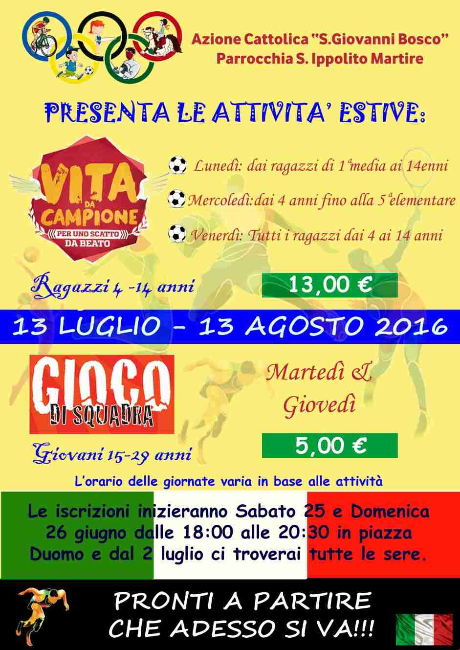 In un anno molto caratterizzato da grandi manifestazioni sportive internazionali come gli Europei di calcio e le Olimpiadi di Rio de Janeiro, è stato scelto come tema centrale delle attività estive lo sport.