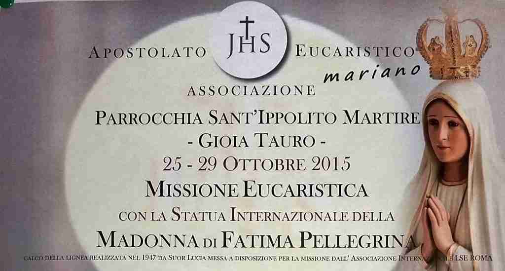 Nell’ultima giornata di missione, giovedì 29, la comunità si stringerà intorno alla statua di Fatima, con “l’atto di affidamento a Maria” della città. Dopo la celebrazione eucaristica delle ore 18 la statua partirà alla volta di Terranova Sappo Minulio.