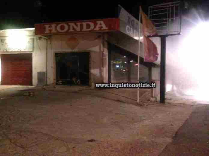 Il forte boato ha svegliato la città. L’intimidazione ha colpito un magazzino sulla cui vetrina è presente l’insegna della Honda.