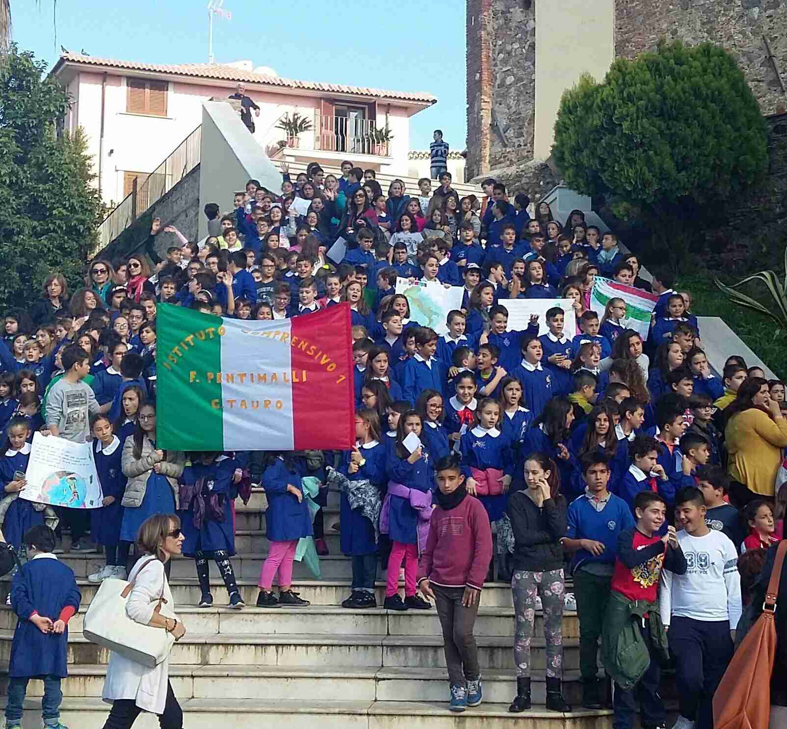 Dalle 10 gli alunni delle scuole gioiesi si sono radunati nel piazzale di sala Fallara, per partecipare al tradizionale rito dell’alza bandiera con il canto dell’inno nazionale.