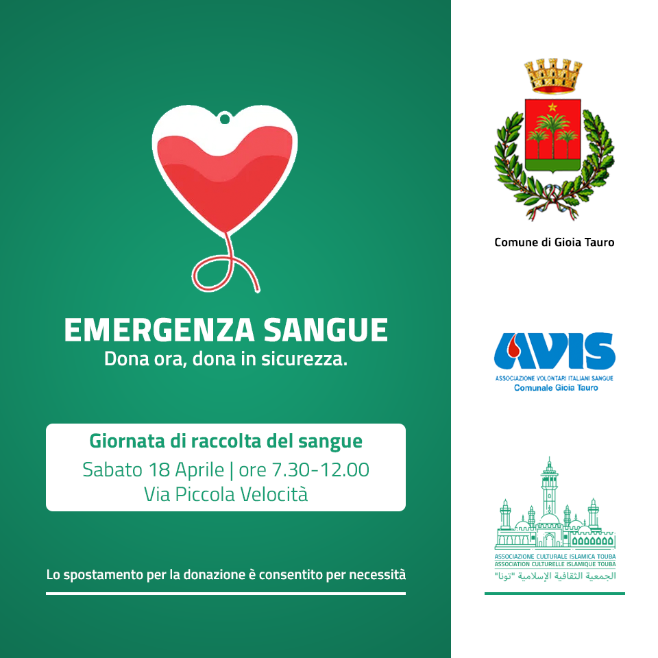La Comunità Culturale Islamica di Gioia Tauro, in collaborazione con l’Amministrazione Comunale e l’Associazione Volontari Italiani Sangue di Gioia Tauro (AVIS), ha organizzato per sabato 18 aprile 2020 dalle 7.30 alle 11.30 una giornata dedicata alla donazione di sangue.