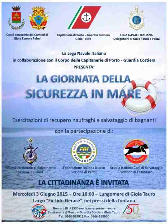 GIOIA TAURO – Le delegazioni di Gioia e Palmi della Lega Navale italiana, in collaborazione con la Capitaneria di Porto e con il patrocinio dei due comuni, hanno festeggiato questa mattina sul lungomare di Gioia Tauro, la giornata della sicurezza in mare.