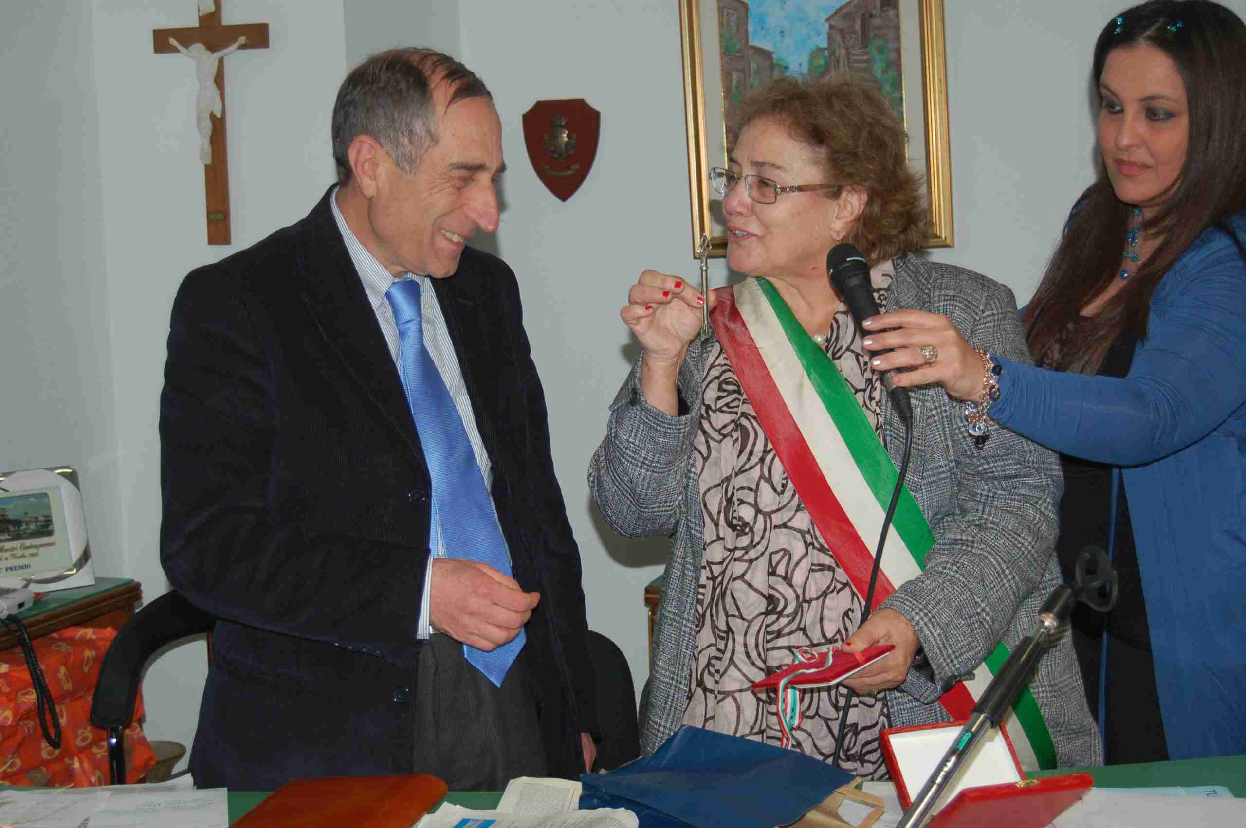 La chiave della città è stata il simbolo di questa nuovo conferimento al mariologo che ha catturato l’attenzione di tutti con il suo intervento in parte in lingua latina e in parte in italiano.