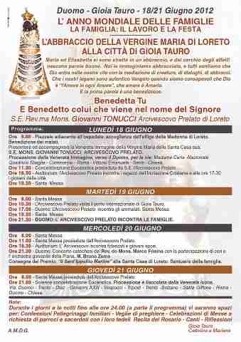 Molti gli appuntamenti previsti per l’occasione (guarda il programma completo):  martedì mattina alle ore 10, il prelato di Loreto visiterà il porto di Gioia tauro, mentre nel pomeriggio della stessa giornata Mons. Tonucci incontrerà gli ammalati e le famiglie della città.
