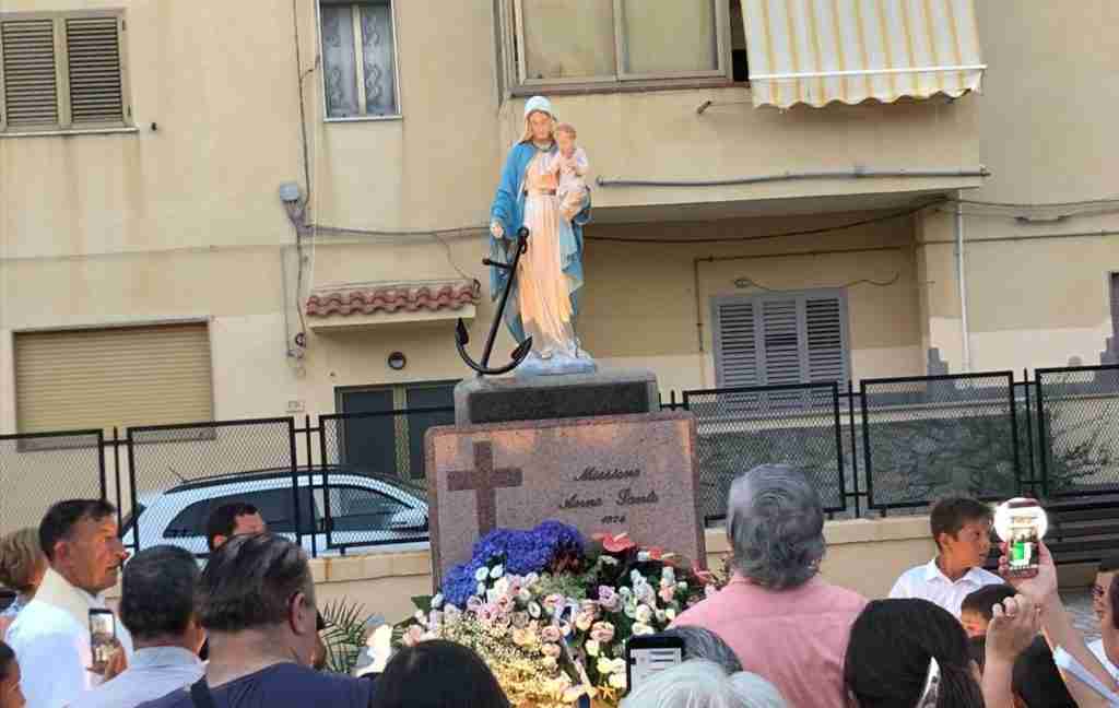 La Statua della Madonna di Portosalvo posizionata in via Veneto a Gioia Tauro è stata restaurata e benedetta sabato sera dal parroco don Gianni Gentile.