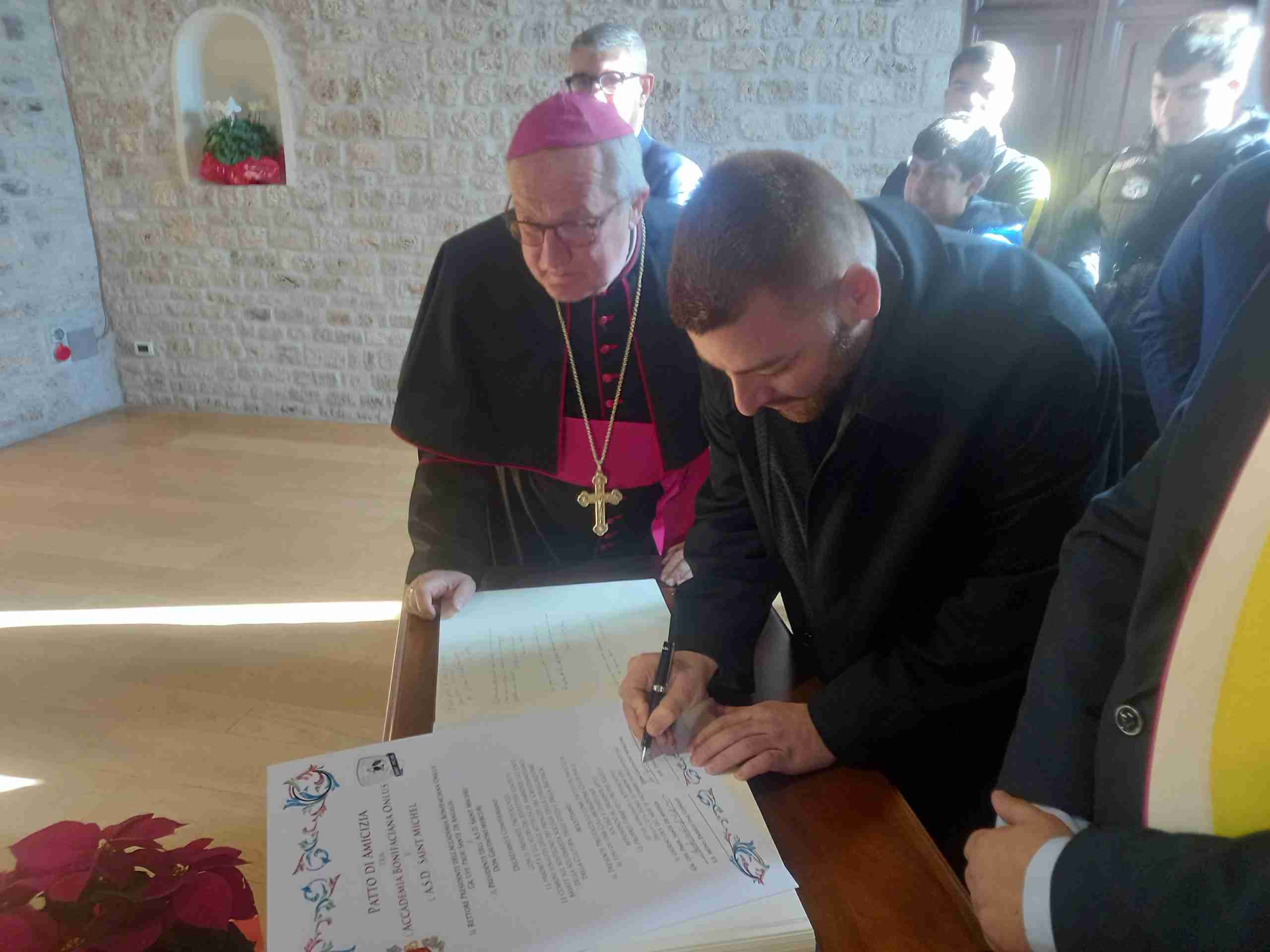 Giornata storica per l’Asd Saint Michel che oltre alla vittoria di 2 a 1 contro il San Nicola da Crissa nella 13.a giornata di andata del campionato Promozione girone B, sabato scorso presso il Palazzo Papale di Anagni ha firmato il Patto di amicizia con la prestigiosa Accademia Bonifacio VIII.