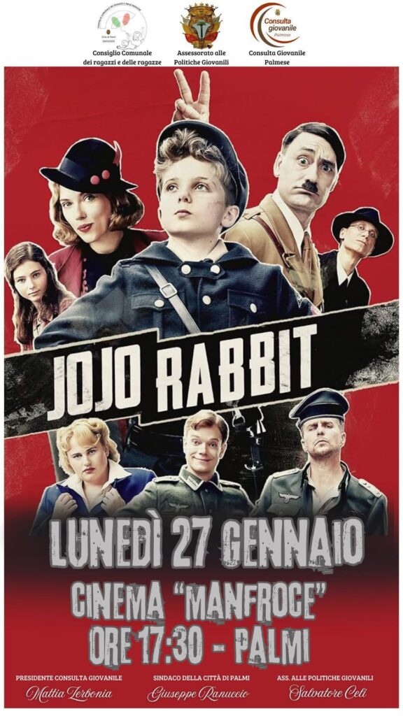 In occasione del Giorno della Memoria, con il coordinamento dell’Assessorato alle Politiche Giovanili, la Consulta Giovanile e il Consiglio Comunale dei Ragazzi e delle Ragazze organizzano la proiezione del film Jojo Rabbit.