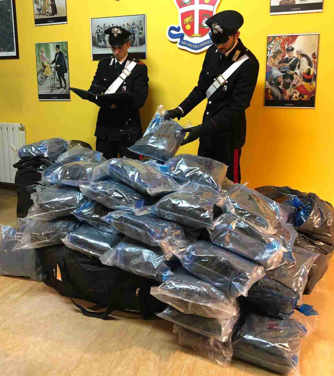 In i Carabinieri, nel corso di una perquisizione domiciliare effettuata in un appartamento utilizzato da Sorrenti, in frazione Amato di Taurianova, hanno scoperto all’interno della camera da letto 5 borsoni da viaggio e tre sacchi di plastica contenenti complessivamente circa 12o chili di marijuana, già essiccata e suddivisa in 111 sacchi in cellophane termosigillati.