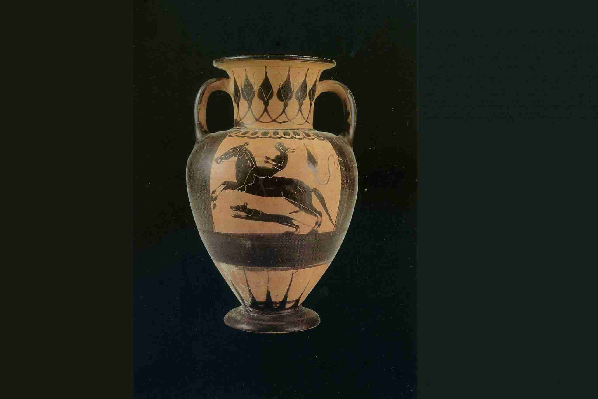 Presso il museo di Reggio si possono ammirare due bei vasi da Metauros, appartenenti ad un corredo tombale, sul fronte, in entrambi, sè raffigurato un cavaliere a cavallo;è a torso nudo ma, la presenza del cane tradisce il ruolo di cacciatore.